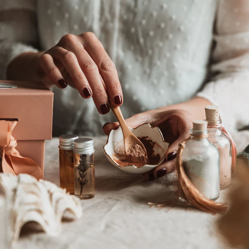 Practice some self-care with this 100% raw, natural powder pink and green clay masks. Wonderful for their mineral content, they hydrate, soften the skin and remove any excess oil, making your skin look brighter. Perfect for dry or sensitive skin.
