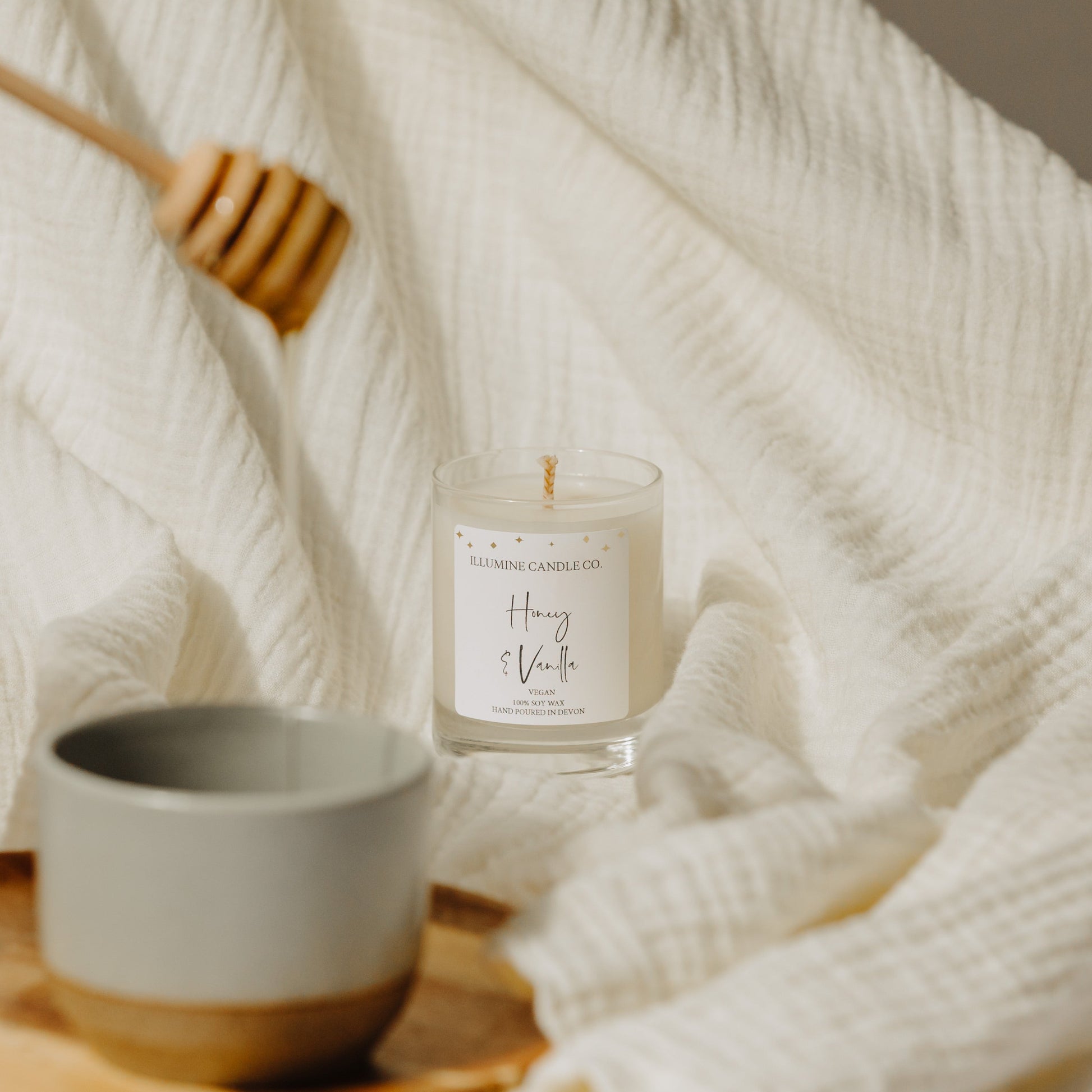 Mini candles are crafted from 100% soy wax, made in Devon, vegan and cruelty-free, designed to bring calm and warmth.