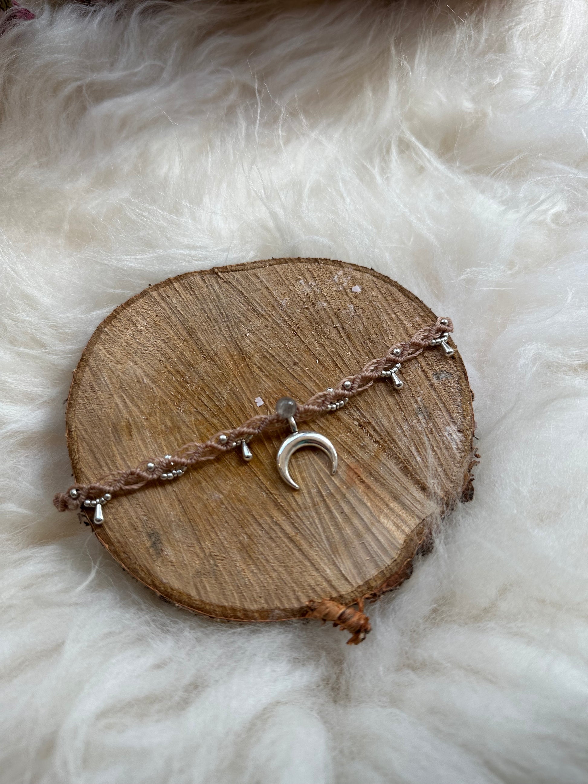 Materials: Sunstone or Labradorite, Macrame, Brass