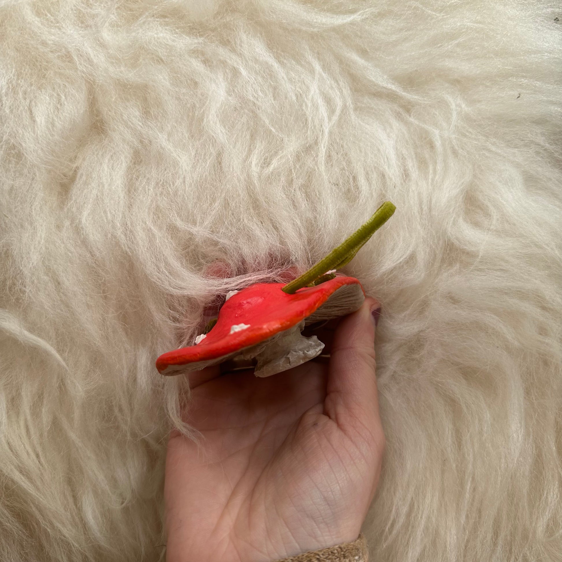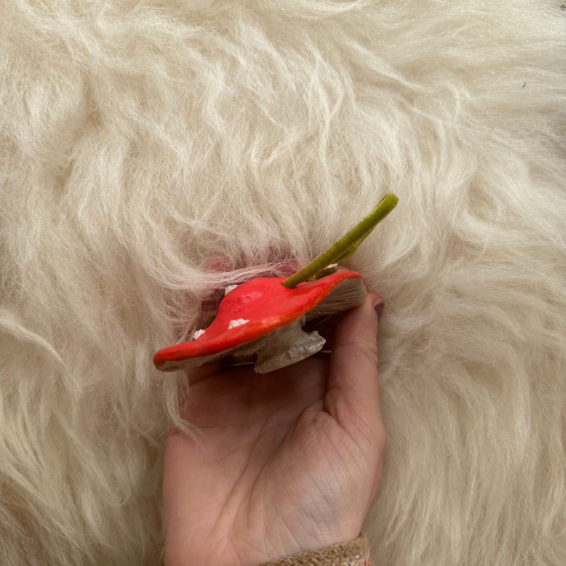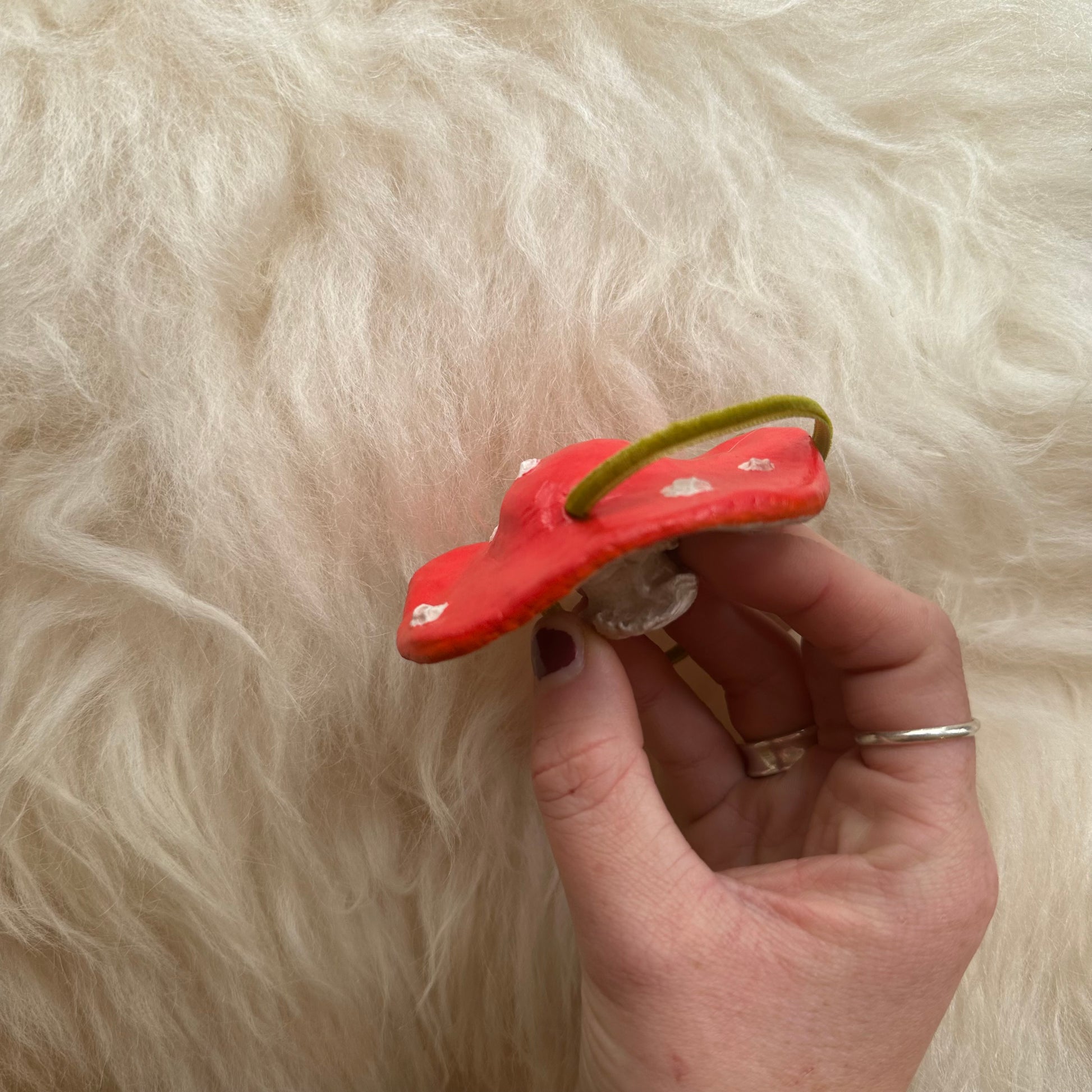Add a touch of whimsy to your home decor with this handmade ceramic mushroom. Featuring a vibrant red cap, delicate white detailing, and a natural earthy stem, each piece is uniquely crafted for a one-of-a-kind look. Perfect for shelves, inviting fairies in and nature inspired displays.