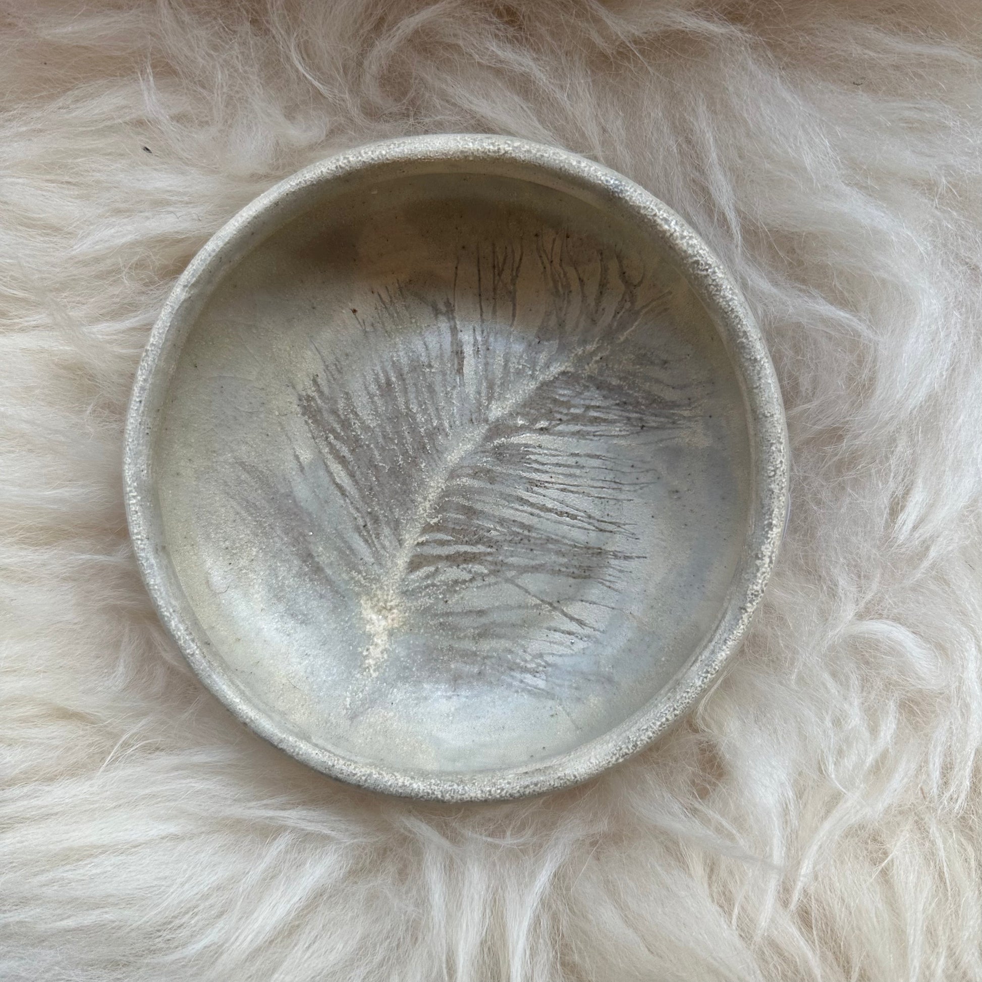 Perfect as a trinket bowl! Imprinted with a real feather.
